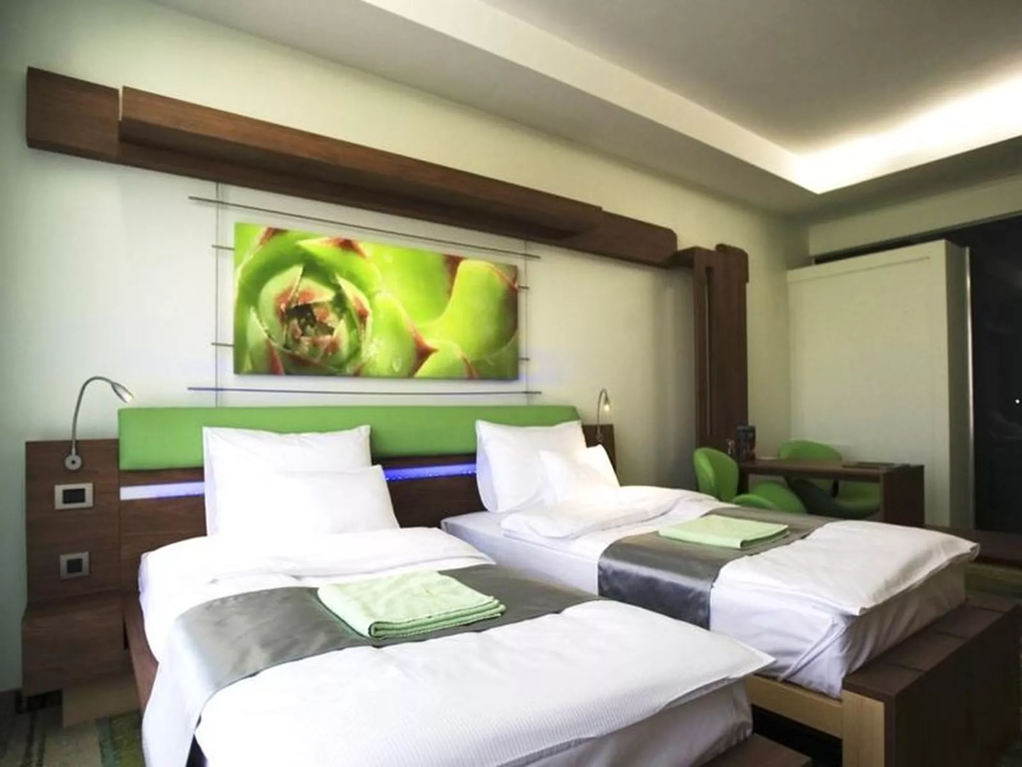 Az ágyak speciális technikával állíthatók, széthúzhatók, lehetővé téve így a double vagy akár a twin ágyazást.
